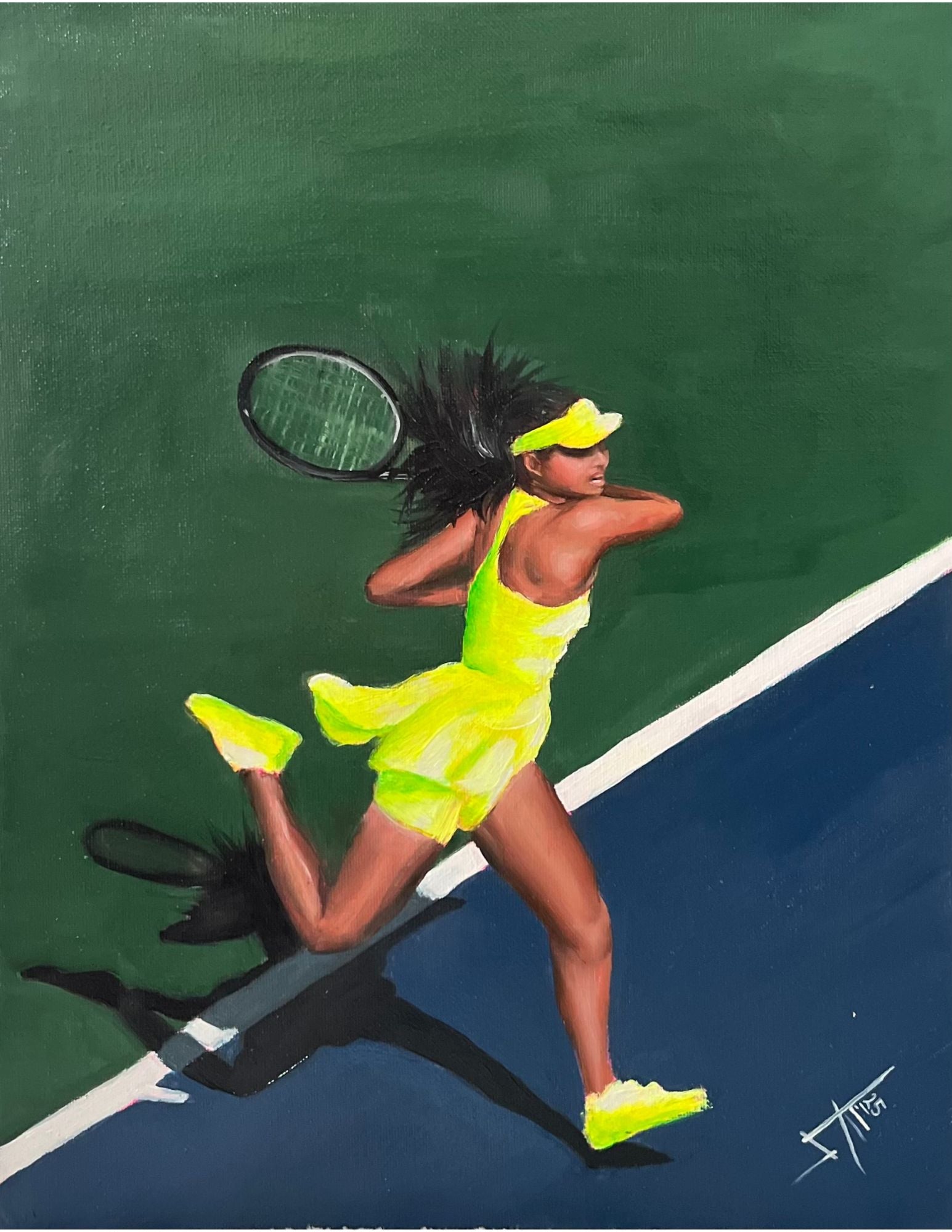 Bold, fast, and unyielding—Break Point captures the raw intensity of the game in a single, electrifying moment. This original oil painting is inspired by Carrie Soto is Back by Taylor Jenkins Reid and pays homage to the grit and grace of competitive tennis.